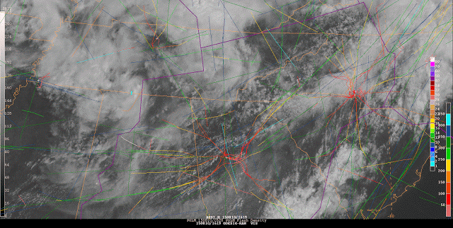 This animation from August 10, 2015, shows GOES-14 one-minute Super Rapid Scan Operation for GOES-R (SRSOR) visible imagery with pseudo Geostationary Lightning Mapper gridded data overlaid in the North Alabama Lightning Mapping Array (NALMA) network for an area of developing convection. The animation also includes Aircraft Situation Display to Industry (ASDI) flight tracking in the Southeast U.S. Download Video Credit: Aviation Weather Center